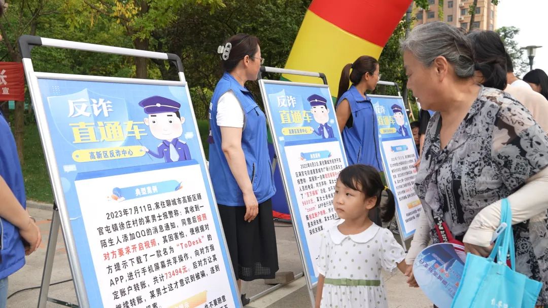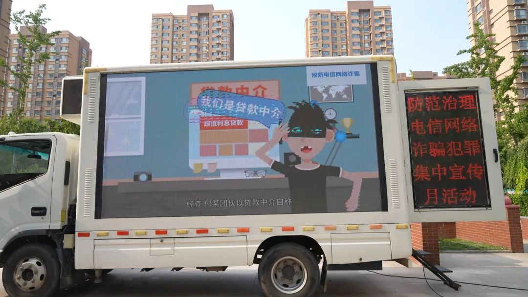 现场采用“舞台+”创新模式。一是设置LED宣传车,将反诈知识做成小视频循环播放,传到群众耳中、留在百姓脑中,让接地气的反诈妙招“声入人心”;二是设置图版展示区,将近年来,我市被诈骗的案例进行宣传警示;三是设置宣传资料区,由反诈宣传员、社区民警、网格员发放各类宣传手册、宣传小礼品,讲解各类反诈知识;四是设置反诈APP注册区,由社区民警、社区工作者、网格员负责帮助市民注册反诈小程序,为新注册市民发放反诈电影《孤注一掷》电影票1张。
